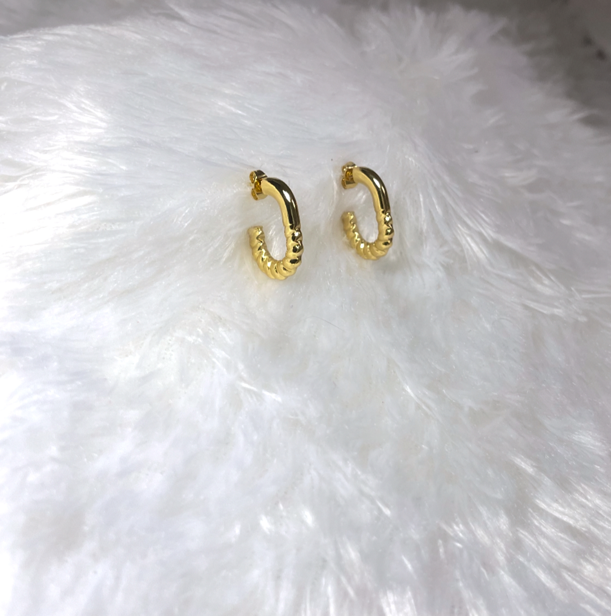 Trendy golden half  hoops with anti-tarnish shine – a perfect blend of love and style.